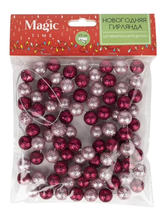 Мишура "Карамельная с белыми вставками" длина 2м, цв.светло-розовый