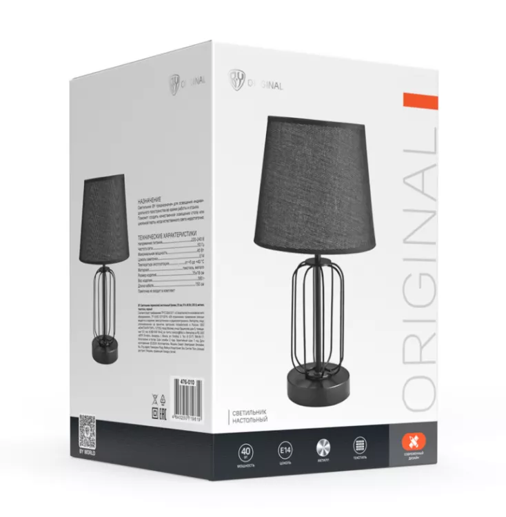 "BY" Лампа настольная "Орлеан" 35см, E14 40Вт 230В, цв.черный
