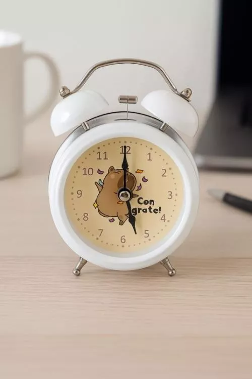 Часы-будильник "Capybara, congratel" 12,5х9х4,8см, цв.белый