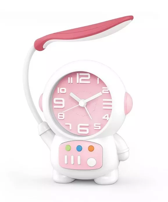 Часы-будильник "Cheerful cosmonaut" со светильником 14х11х5см, цв.розовый
