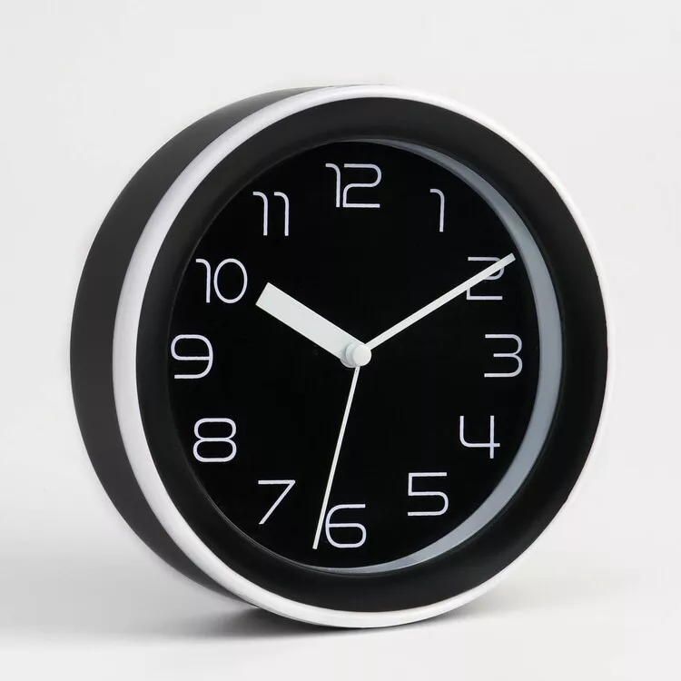 Часы-будильник "Классика" 15см, цв.черный с белым