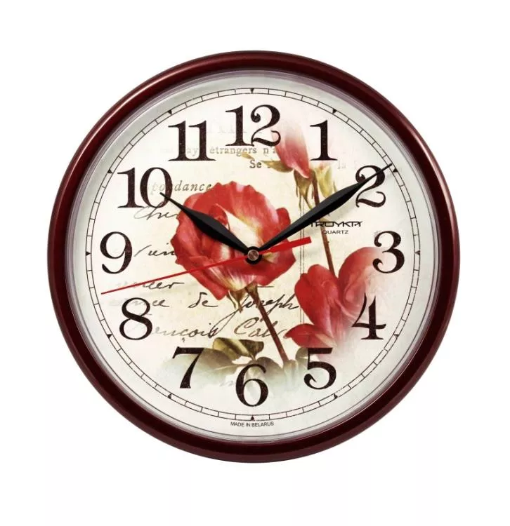 Часы настенные "Розы" 22,5см, цв.бордо