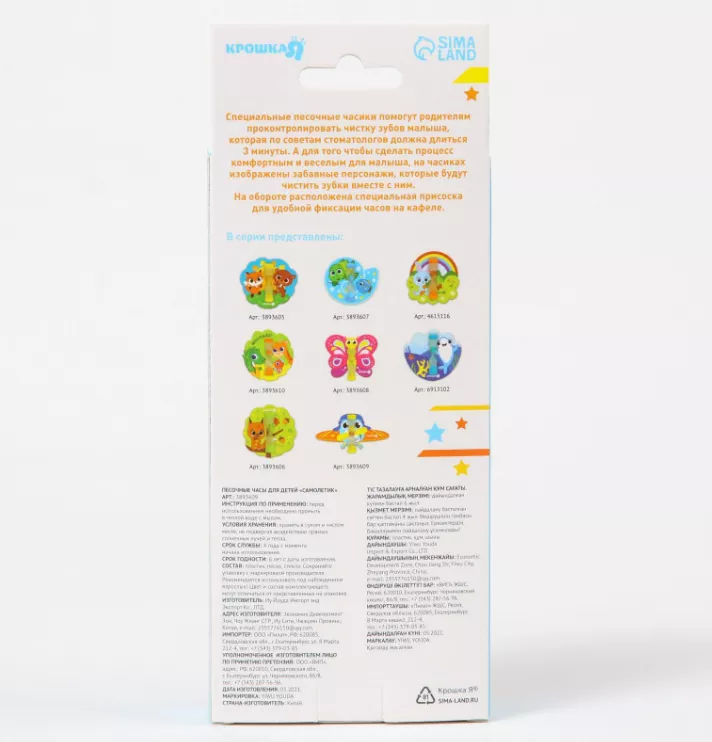 Часы песочные "Самолетик" на присоске, 3мин., цв.микс