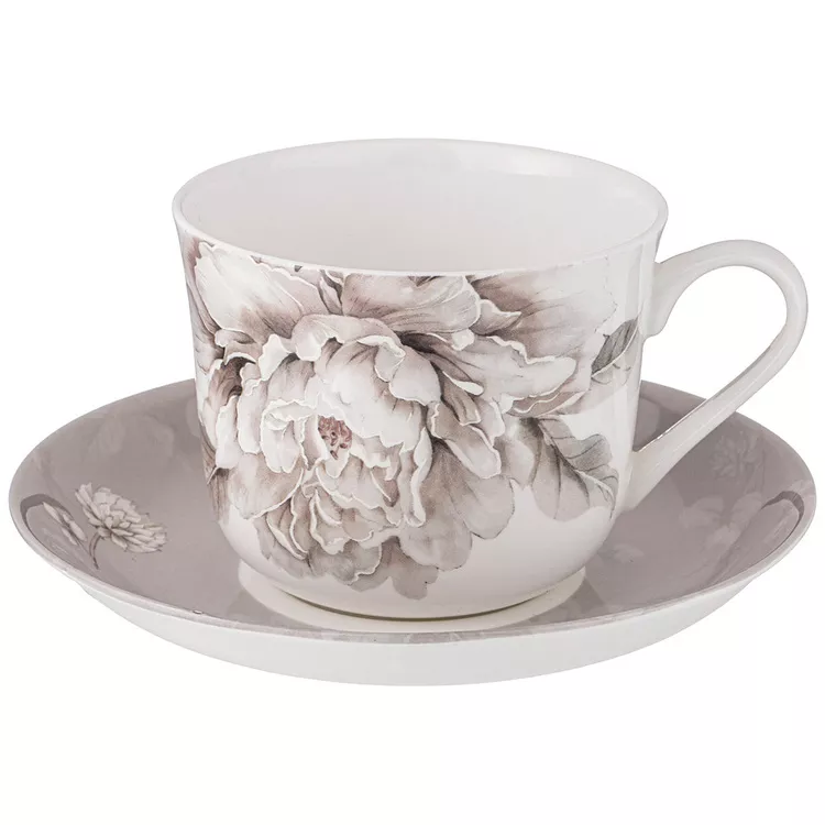 Чайная пара "Белые цветы" 500мл цв.серый