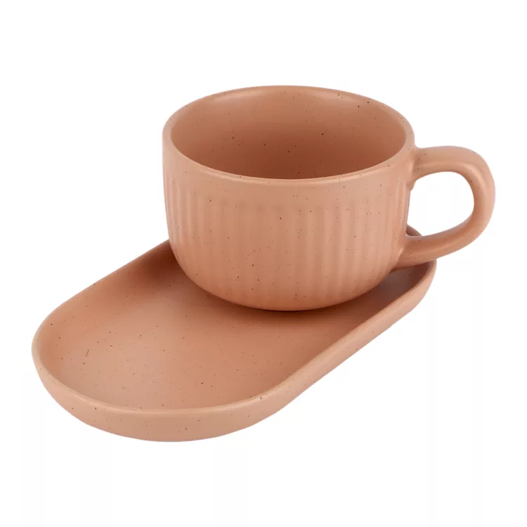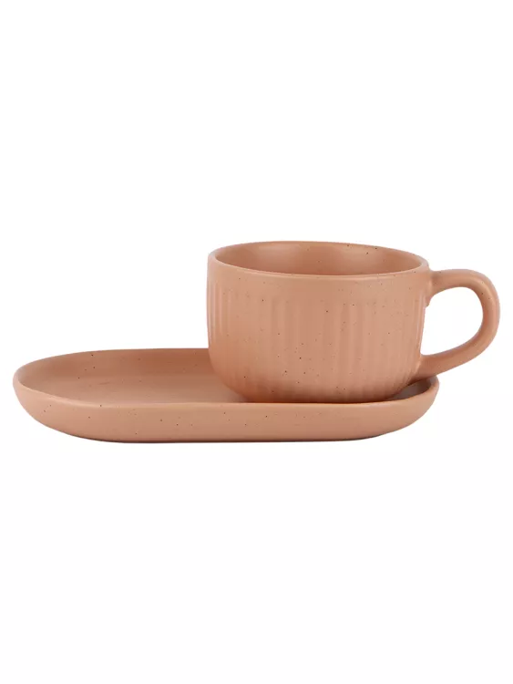 Элегантная чайная пара из керамики — идеальный выбор для ценителей стильной и практичной посуды. В комплект входят чашка и блюдце, выполненные в современном дизайне и однотонном коралловом цвете, что придает им утонченный и универсальный вид. Пара подходи...