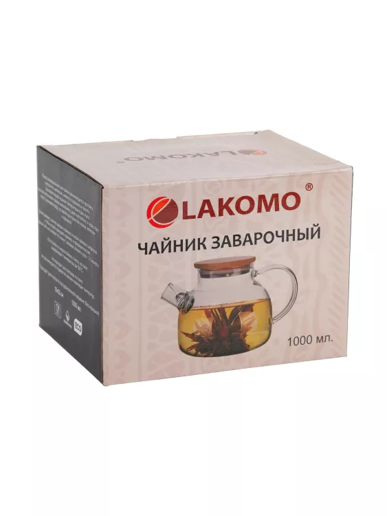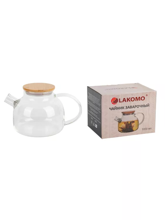 Чайник заварочный с бамбуковой крышкой 1000мл, в п.у.