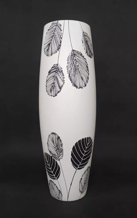 "Черные листья" Ваза-цилиндр 50см, цв.белый