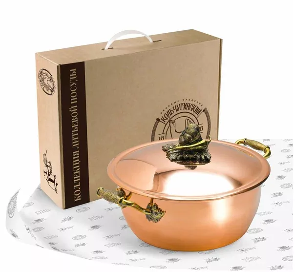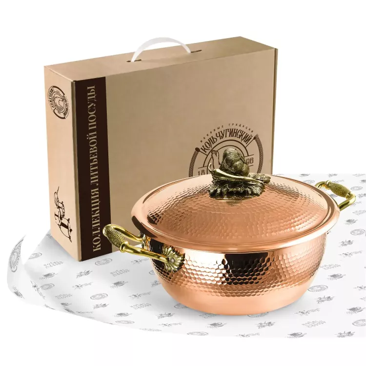 "Чеснок" Кастрюля 3,5л медная с лужением кованая с крышкой