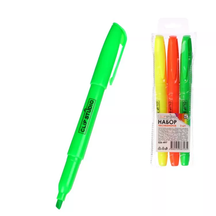 "ClipStudio"Набор маркеров-выделителей 3шт., 3цвета