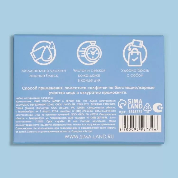 "Colorful" Матирующие салфетки 50шт., цв.синий
