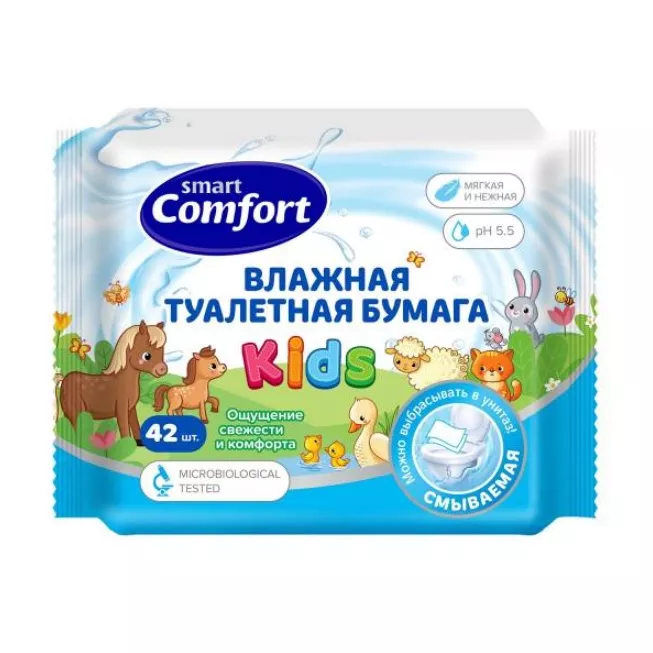 "Comfort Smart" Влажная туалетная бумага с экстрактом ромашки 42шт.