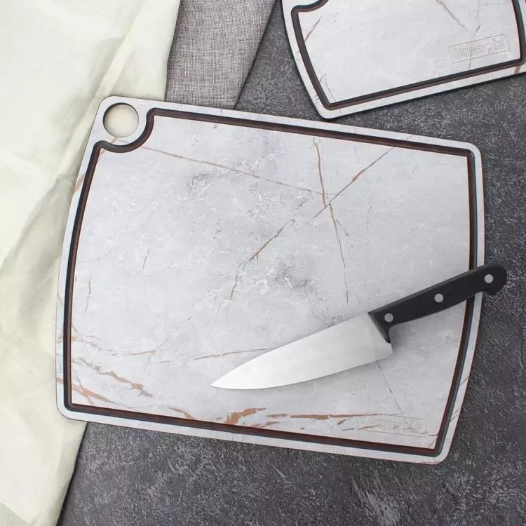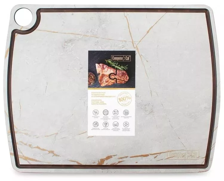 "COMPOSE EAT" Fashion" Доска разделочная с желобом 29х22х0,6см, цв.мраморный Грейс