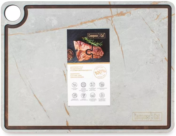 "COMPOSE EAT" ProFashion" Доска разделочная с желобом 32х24см, цв. мраморный Грейс