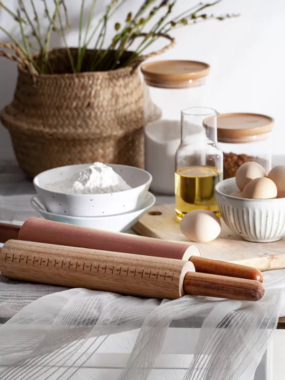 "Cook Charmy" Rose Скалка силиконовая 44,5см c деревянными ручками