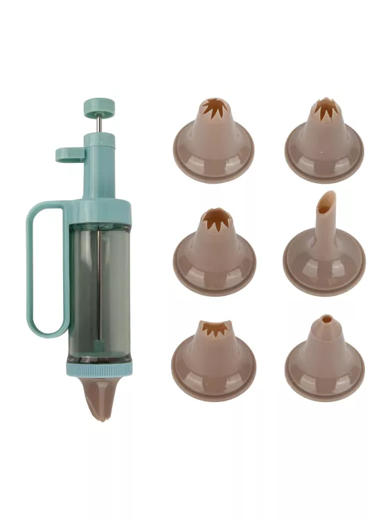 Шприц для кондитерских изделий с 6 разными насадками позволит вам легко украсить свои десерты. Пластиковый корпус с металлическим стержнем обеспечивает надежность и долгий срок службы этого инструмента. Этот набор идеально подойдет для украшения тортов, и...
