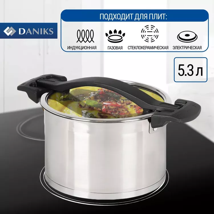 "Daniks Фантон" Кастрюля нерж. со стекл. крышкой 5,3л