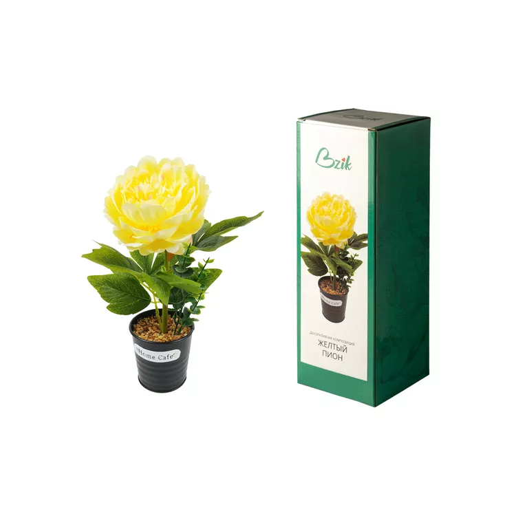 Декоративная композиция "Желтый пион" - это прекрасное украшение для вашего дома или офиса. Искусственные цветы в металлическом горшке создают отличный акцент и придают интерьеру свежесть и яркость.