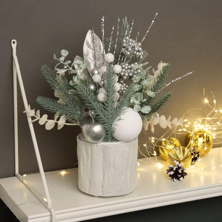 Декор новогодний "Зимняя композиция" 24х10,5см, цв.белый