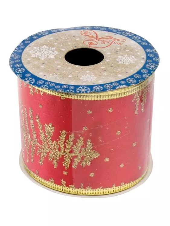 Декоративная лента "Красные снежинки" 6,3х270см 42806