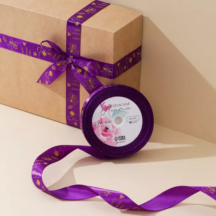 Декоративная лента "С праздником!" 2смх22,5м, цв.фиолетовый