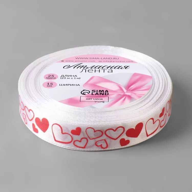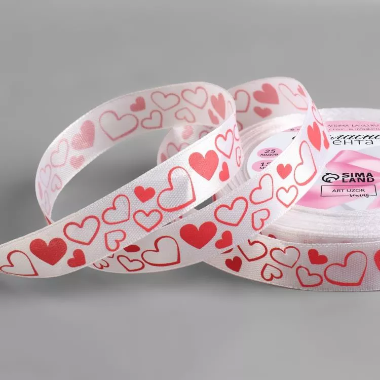 Декоративная лента "Сердечки" 1,5смх24м, цв.белый/красный