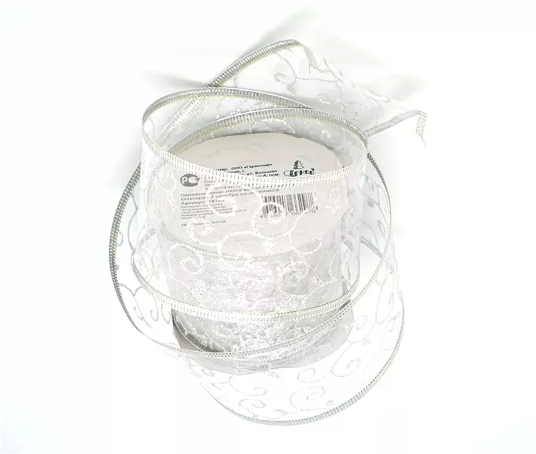 Декоративная лента "Серебро со снежинкой" 5х270см
