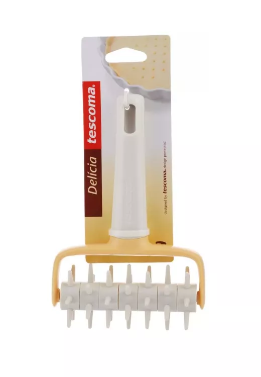 Ролик с тупыми концами идеально подходит для быстрого и удобного продырявливания теста