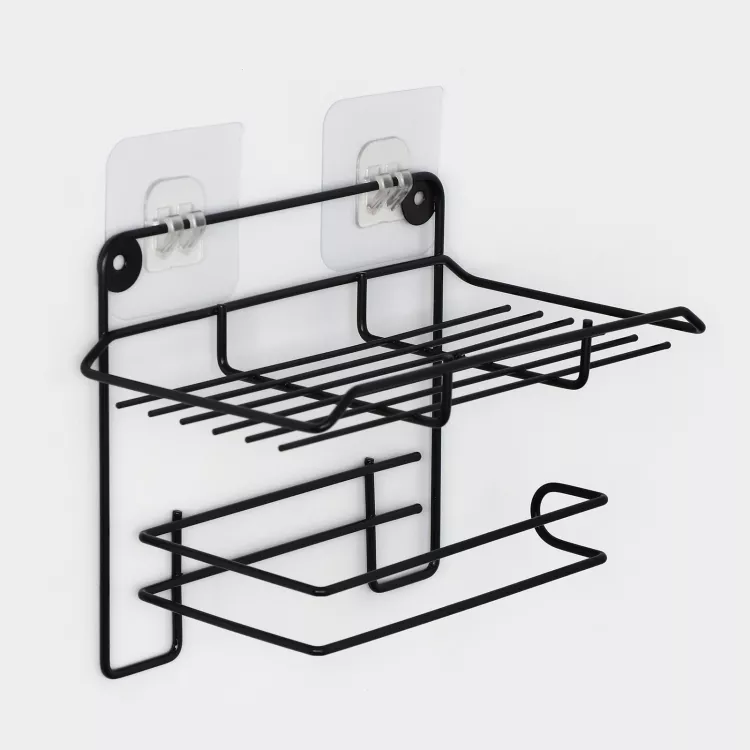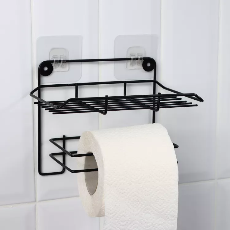 Держатель для туалетной бумаги с полкой 19х10х14,5см, цв.черный