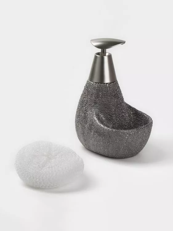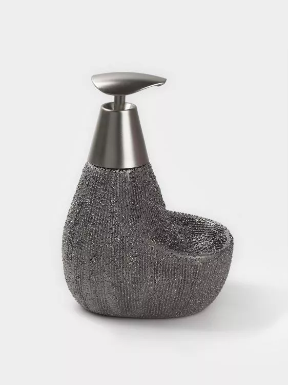 "Доляна" Дозатор для моющего средства с подставкой для губки 350мл, цв.серый