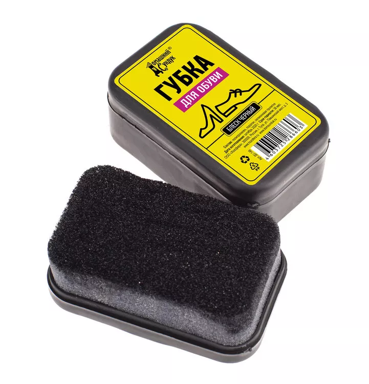 Губка для ухода за гладкой кожанной обувью, без дозатора, пропитанная черным силиконовым средством.