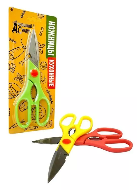"Домашний Сундук" Ножницы кухонные 21см с орехоколом и открывалкой цв.ассорт.