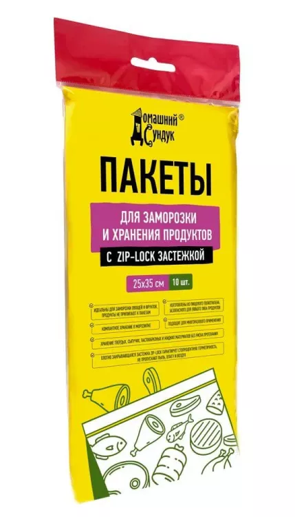 "Домашний Сундук" Пакеты для хранения и заморозки с замком zip-lock 10шт 25х35см, 35мкм