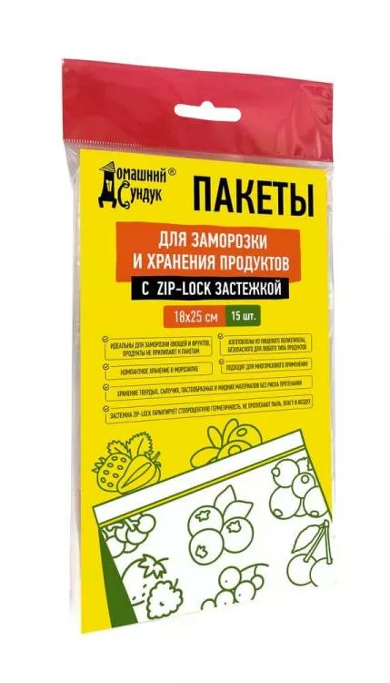 "Домашний Сундук" Пакеты для хранения и заморозки с замком zip-lock 15шт 18х25см, 35мкм