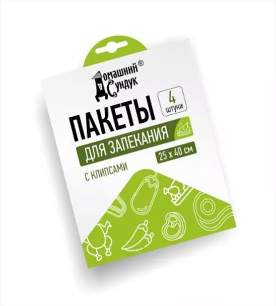 "Домашний Сундук" Пакеты для запекания с клипсами 25х40см 4шт.
