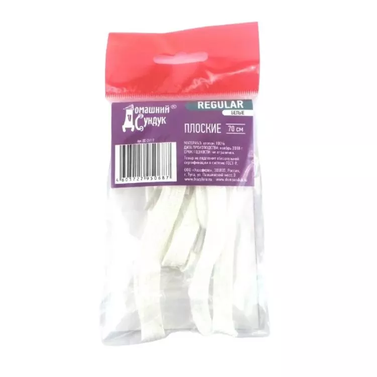 "Домашний Сундук" Шнурки для обуви "REGULAR" плоские, 70см, цв.белый