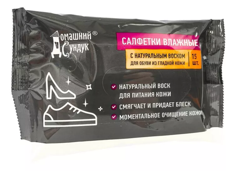 "Домашний Сундук" Влажные салфетки для обуви с натур.воском 15шт.
