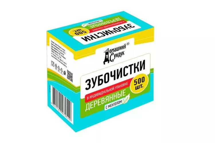 "Домашний Сундук" Зубочистки в индивидуальной упаковке с МЕНТОЛОМ, 500шт.