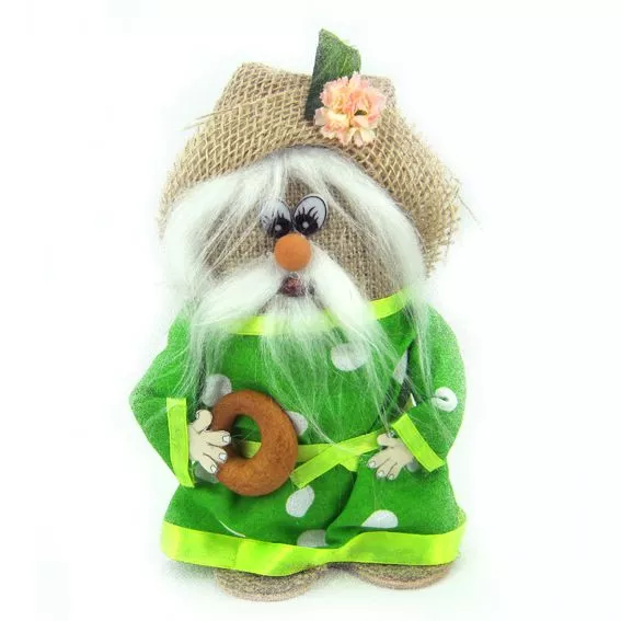 Домовой Семёныч отличный домохозяин, заботливый и очень добрый. Присутствие в доме домового оберегает жилище. Бублик в его руке — символ крепкой и дружной семьи семьи. С таким домовым в Вашей семье всегда будет мир и лад.