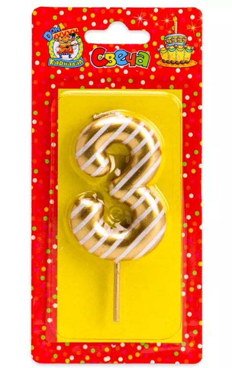 "Дон Карнавал" Свечи для торта "Цифра 3" цв.золото