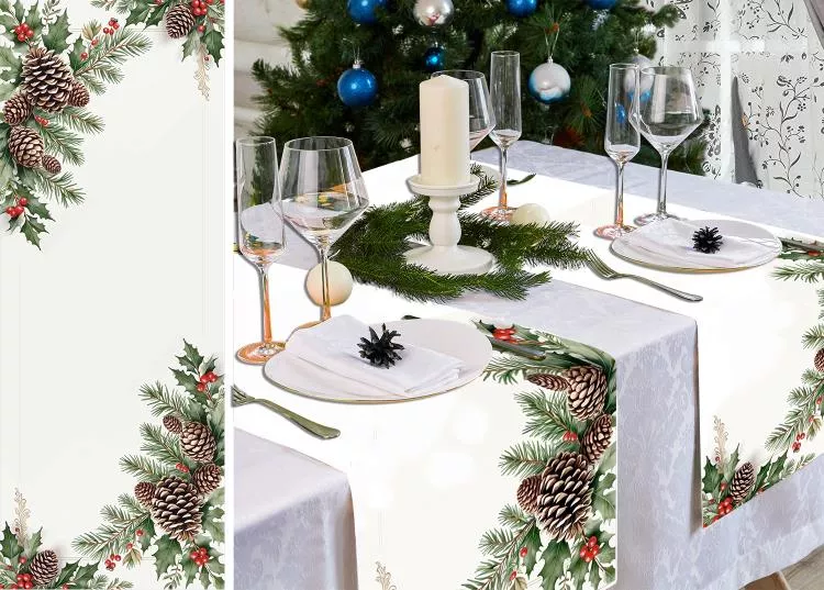 Дорожка на стол "Шишки и ягоды" 125x45см