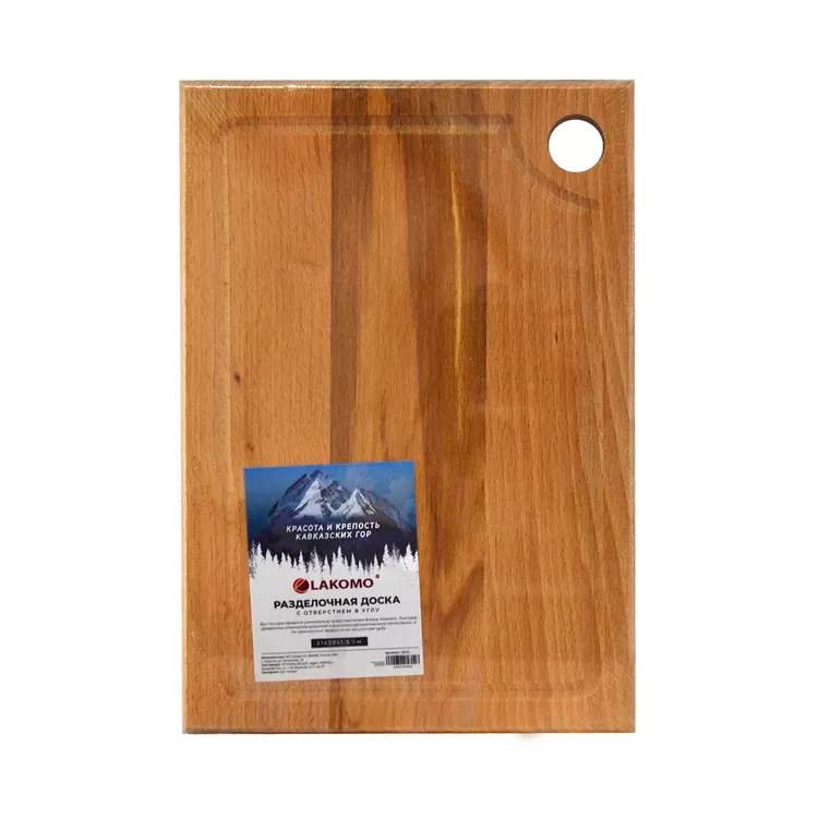 Доска разделочная 21х30х1,6см, бук, прямоуг., с отверстием в углу