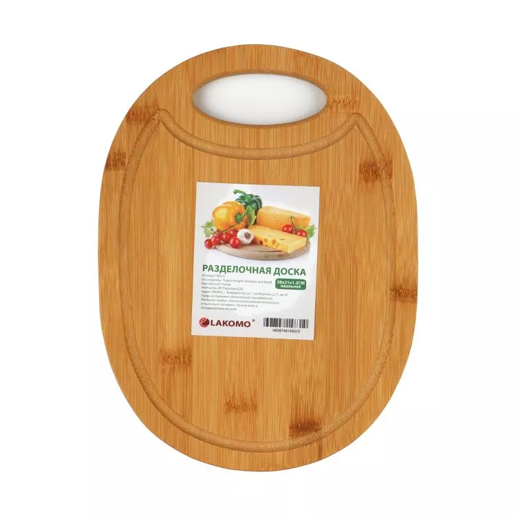 Эта разделочная доска из бамбука станет незаменимым помощником на вашей кухне. Выполненная из экологически чистого материала, она отличается высокой прочностью и долговечностью. Деревянная овальная доска с удобной ручкой, которую можно повешать для удобно...