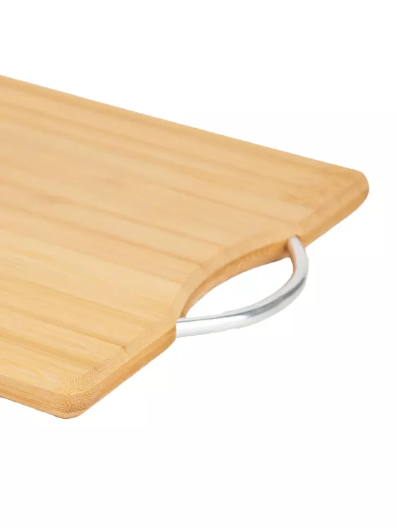 Доска разделочная 38x28x1,8, бамбук, прямоуг. с метал. ручкой