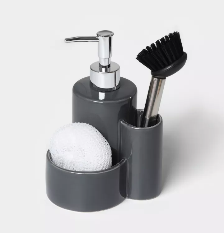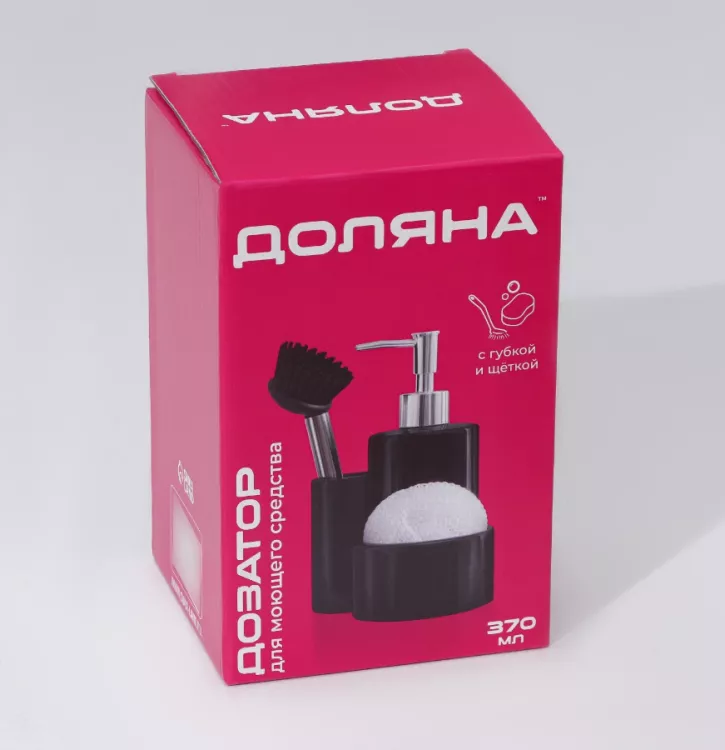 Дозатор для моющего средства с подставкой для губки и щетки "Милитари" 370мл, цв.серый
