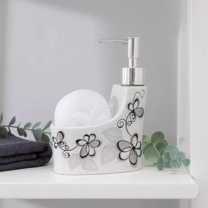 Дозатор для моющего средства с подставкой для губки "Романтика" 250мл
