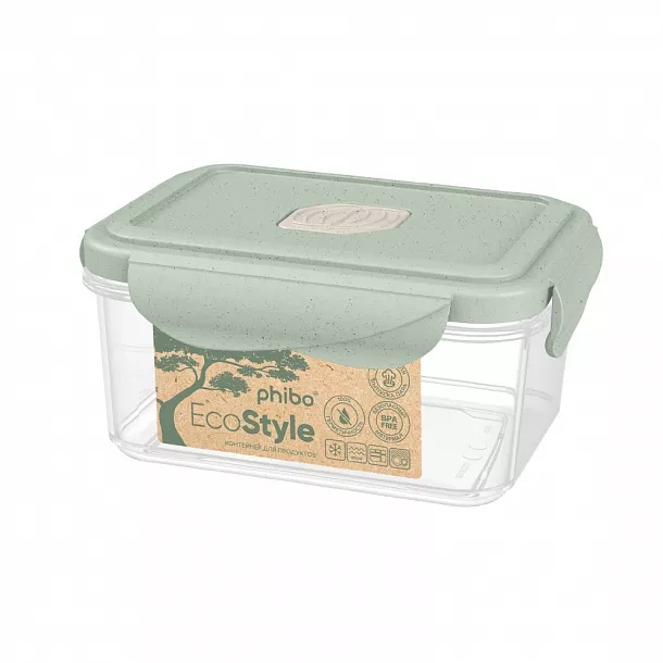 "Eco Style" Контейнер пластик 0,5л прям 14х10х7см цв.зеленый флэк