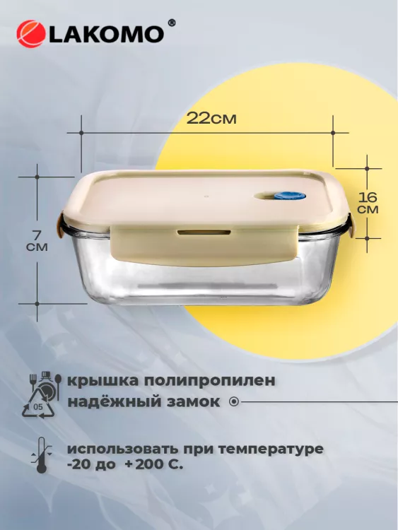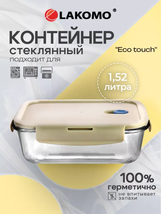 "Eco touch" Контейнер стекло 1,52л, прям. 22х16х7см