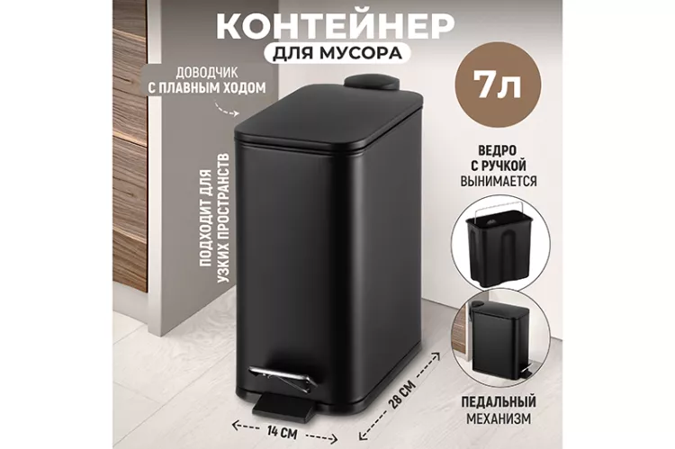 "El Casa" Контейнер для мусора с педалью 7л, цв.черный