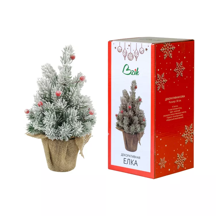 Декоративная ель: 28 веток, 3 пластиковых ягоды