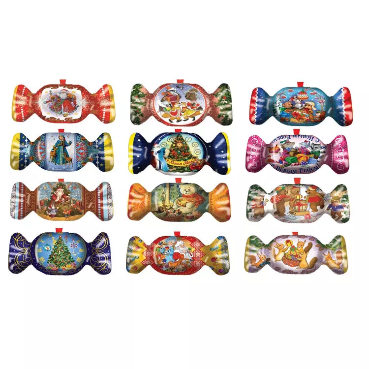 Елочное украшение "Конфетка с пожеланием" 7,5х3,5х2,6см, дисплей